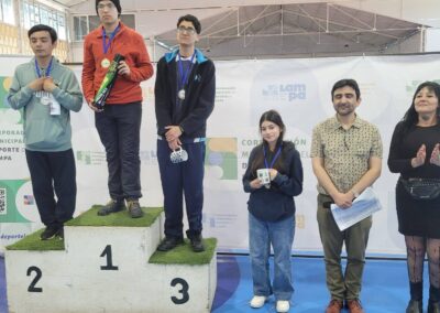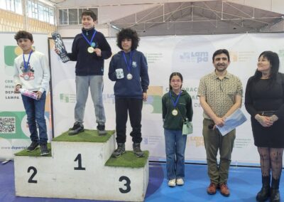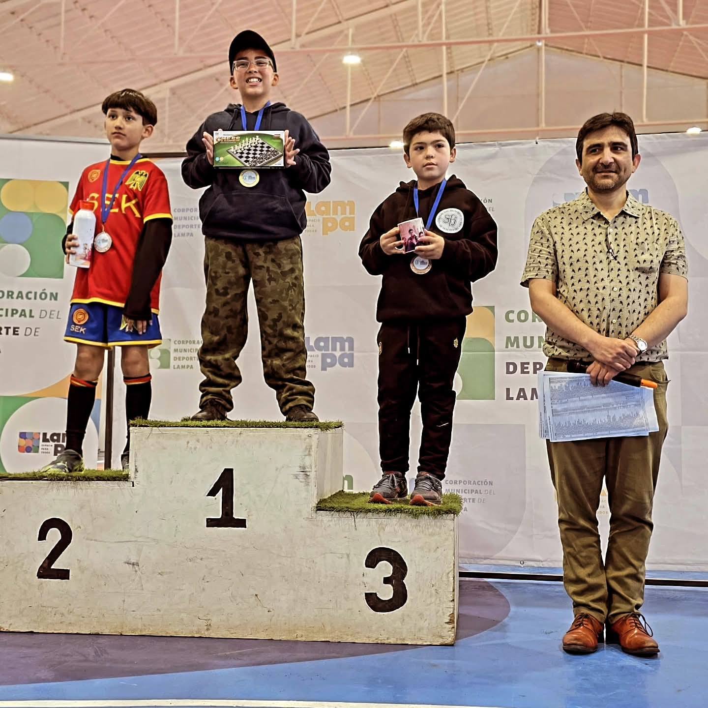 1° lugar: León Orellana Maturana (Colegio Cabo de Hornos Colina). 2° lugar: Franco Silva Moreno (Colegio Cabo de Hornos Colina). 3° lugar: Franco Manzano Medina (San Fco. Javier de Huechuraba). Mejor femenil: Agustina Zuñiga Castillo (Jugadas Estratégicas).